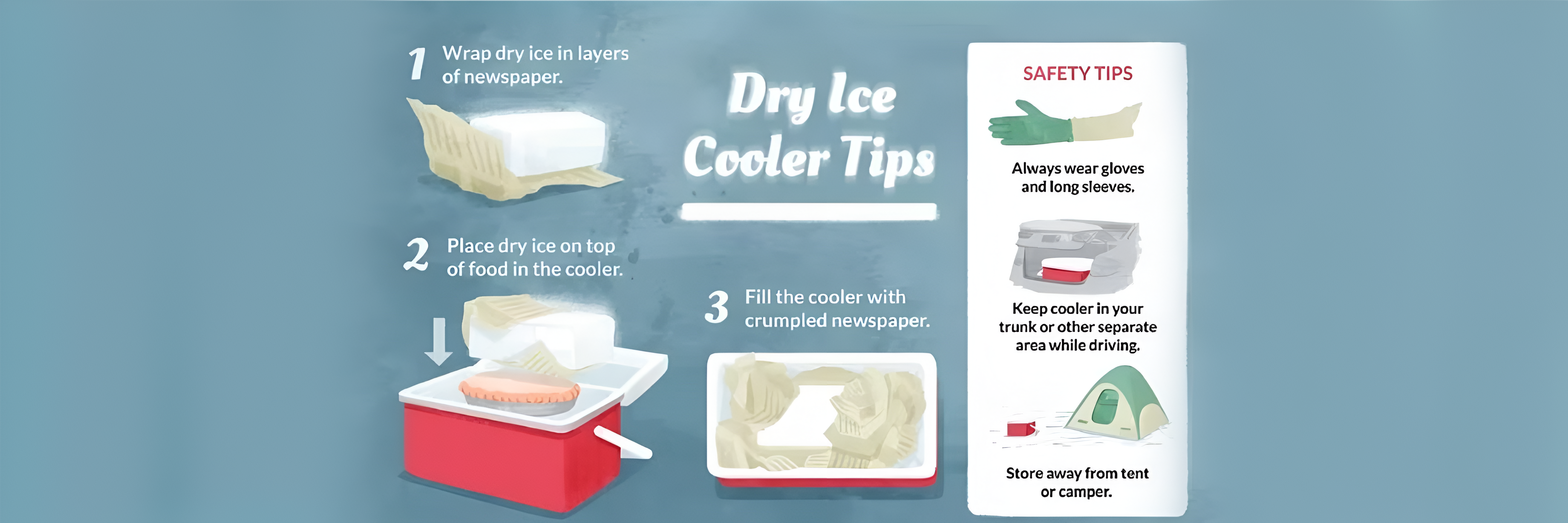 Camping with dry ice can be a safe and effective way to keep your food and beverages cold, but it's essential to be aware and handle it with care. Here are some safety tips for camping with dry ice: